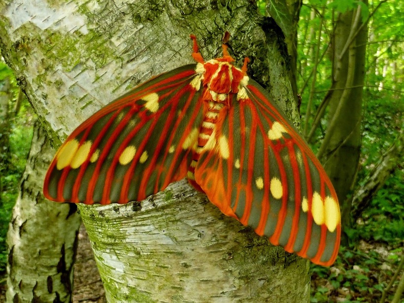 Эти бабочки обитают на территории Канады и США. Гусеница этой бабочки является самой крупной из всех на нашей планете — ее длина на последней стадии развития составляет 15,5 сантиметров. Восхищает и ее красочный наряд. Зеленое тело в районе головы украшает несколько пар рожек, которые призваны сбить с толку противника и защитить гусеницу в случае опасности. Питается гусеница на деревьях грецкого ореха и представителях рода кария из того же семейства ореховых. По этой причине на родине эту бабочку еще называют королевской ореховой молью.