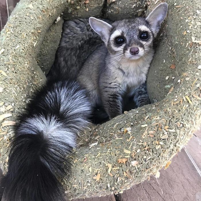 Находясь в опасности, эти животные становятся не так очаровательны: с помощью анальных желез они выделяют отвратительнейший запах, способный защитить мелких хищников от врага.