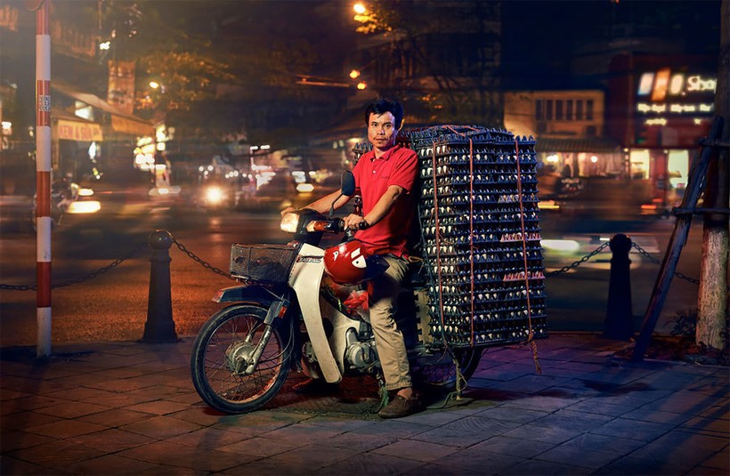 Заинтригованный «мопедной» культурой Ханоя, фотограф из Лондона Джон Энох сделал серию снимков о громадных и причудливых мотоциклетных перевозках по всему вьетнамскому городу. Местные умудряются перевозить на своих маленьких железных лошадках практически все — от гор пакетов со льдом до балансирующих на грани катастрофы лотков со свежими яйцами. Не верится, насколько ловко управляются вьетнамцы со столь скромными исходными «мощностями» транспортировки!
