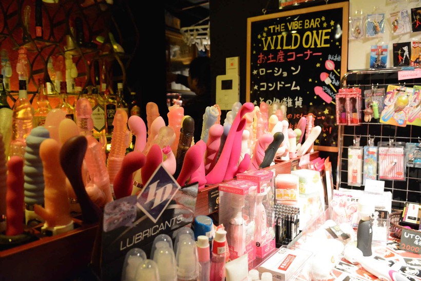 Заплатив около 20 долларов в Shibuya’s Vibe Bar Wild One, вы получите фирменную пластиковую перчатку, которая станет вашим пропуском к ознакомлению более чем с 330 моделями вибраторов со всего мира. Устройства можно брать в руки, рассматривать, включать, но не использовать по назначению! Такое развлечение доступно только для женщин, либо влюбленных пар.
