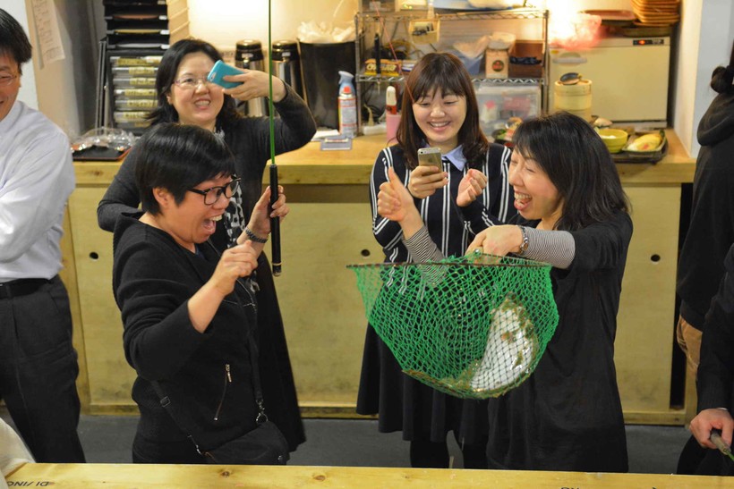 Для того, чтобы поесть в ресторане Zauo, вам сначала придется поймать свой ужин с помощью комбинаций крючков, наживы и сетей. Весь подвох в том, что вы не можете выбросить рыбу обратно в аквариум, если вам не подходит ее цена, которая разнится в зависимости от вида рыбы, которую вы выловите. Получив добычу, вы сможете решить в каком виде вам ее подадут: сашими, гриль или жареную.