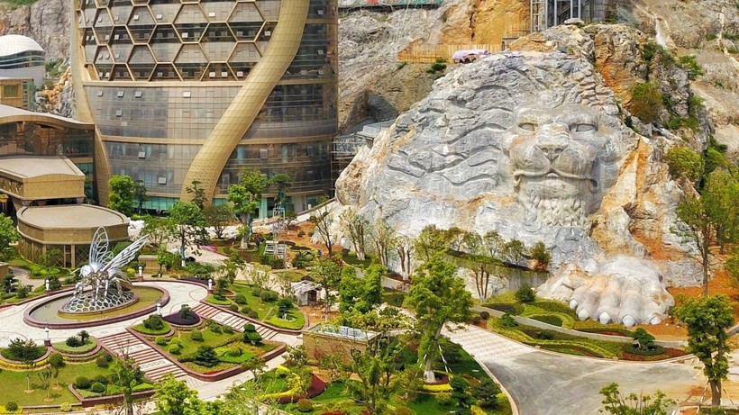 Но самое впечатляющее — это даже не сами здания отеля в виде сот, а скульптуры, вырезанные прямо в скале рядом с гостиницей. Это две огромные львиные головы в высоту достигающие более тридцати метров, над которыми трудилась около полугода почти сотня человек.