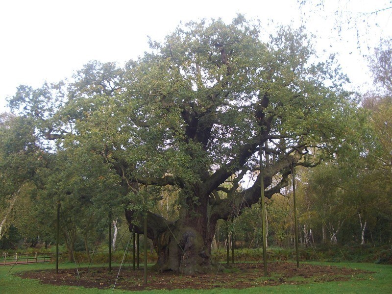 Этот дуб укрывал Робина Гуда и его друзей от шерифа Ноттингема. Он расположен в самом центре Шервудского леса. Возраст дерева более 1000 лет, узловатый ствол достигает в диаметре 10 метров, а живописная крона раскинулась на 30 метров. Англичане очень любят свое дерево и всеми возможными способами стараются продлить его жизнь. Подпорки под раскидистые и закрученные ветки были поставлены еще при королеве Виктории.
