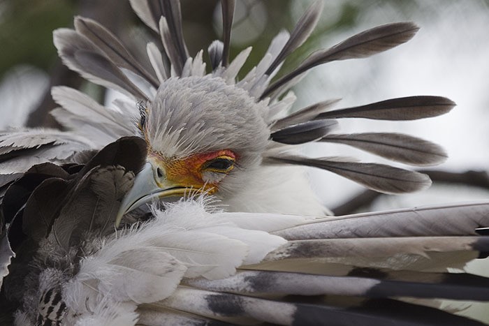Птица-секретарь — это довольно крупный хищник, близкий родственник ястребов и орлов. Такое забавное название он получил благодаря перьям на затылке, которые делают его похожим на клерка 18 века. Еще одной отличительной особенностью пернатого являются его длинные изогнутые ресницы.