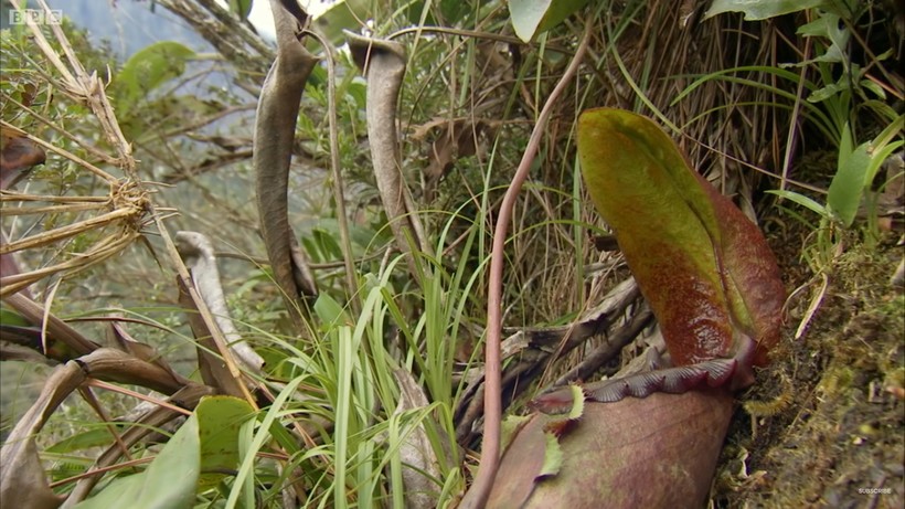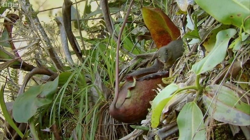 И вот что «придумало» растение: оно используется в качестве туалета определенным видом зверьков, которые удобряют лиану. В результате работы ферментов получается нектар, который притягивает новых животных в пасть плотоядного создания. Непентес Раджа подстроился под природу и смог даже видоизменить свою кувшинку — она стала похожа на «природный унитаз». После этого в пасть к растению попадает его «пища», которую он может поглотить.