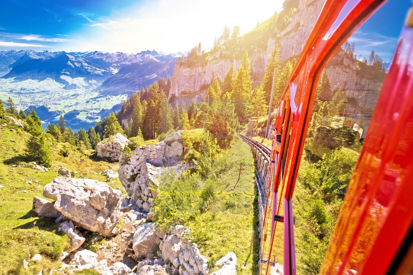 В получасе езды от Люцерна находится небольшой городок Альпнахштадт. Он лежит у крутой горы Пилатус, и уже более ста лет на ее вершину взбирается маленький красный вагончик, который безумно полюбился туристам. Пилатусбан — самая крутая дорога в мире. Поезд поднимается на высоту более двух тысяч метров всего за полчаса. Многие участки дороги лежат под углом 48 градусов, настоящий швейцарский экстрим!