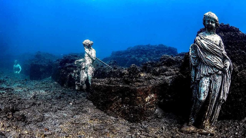 Археологи, исследовав античные руины, обнаружили на дне залива несколько вилл с прекрасно сохранившимися ванными, статуями и мозаикой. Одна из резиденций предположительно была собственностью императора Клавдия.
