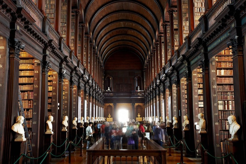 Библиотека Тринити-колледжа в Дублине на самом деле среди туристов очень популярна, и каждое утро здесь собирается большая очередь. Посетить здесь можно легендарный Длинный зал с высокими потолками, мраморными бюстами и длинными стеллажами, где ровными рядками стоит более двухсот тысяч книг.