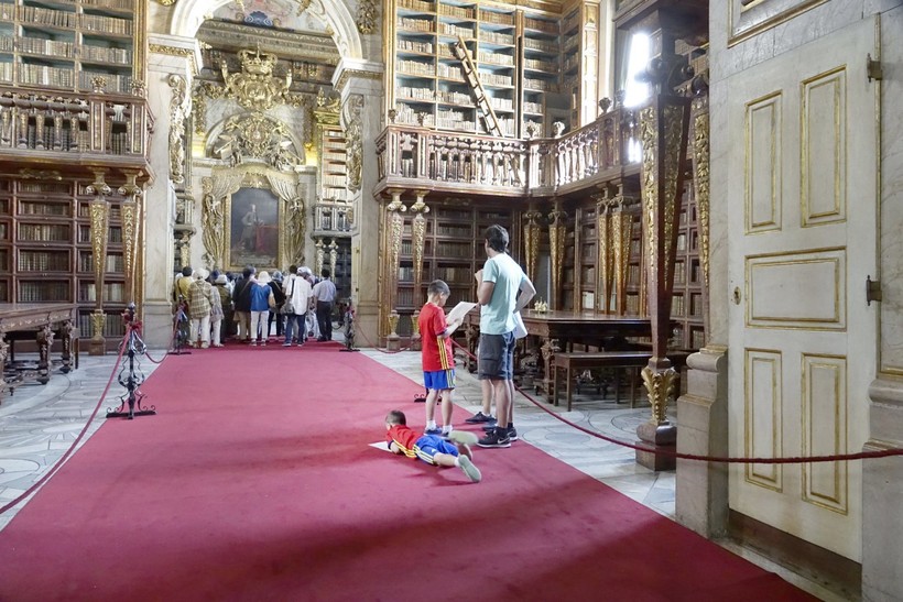 Библиотека, построенная в стиле барокко, является одним из главных архитектурных строений университета Коимбры. Здание, которое строили больше десяти лет и впервые открыли в 1728 году, украшено потолочными фресками и массивными столами из благородных сортов дерева. Но самое главное в этой библиотеке — ее обитатели. Здесь живет колония летучих мышей, и они помогают уберечь книги от насекомых.