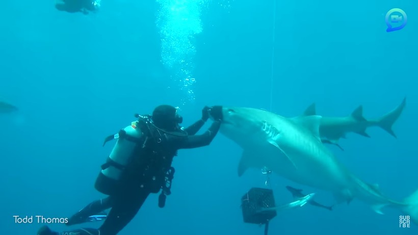 Человек на протяжении всей истории приручал совершенно разных животных, многие из которых потом становились домашними и привыкали жить рядом с людьми. Есть примеры, когда хищные звери становились друзьями. Но на этом видео происходит нечто невероятное: один из дайверов смог найти общий язык с тигровой акулой, которая является одним из самых опасных хищников на планете.