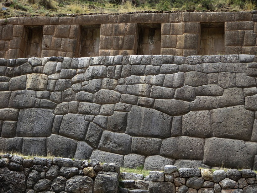 Главное сооружение комплекса представляет собой каменные террасы, обустроенные на склоне горы. В них встроена довольно сложная система подачи воды, которая до сих пор успешно функционирует. Вода в сложную систему поступает из естественного источника, который считался священным. В некоторых местах можно увидеть характерную для андских построек загадочную полигональную кладку, которую дополняют более поздние фрагменты стен, выполненные уже в другой технике.