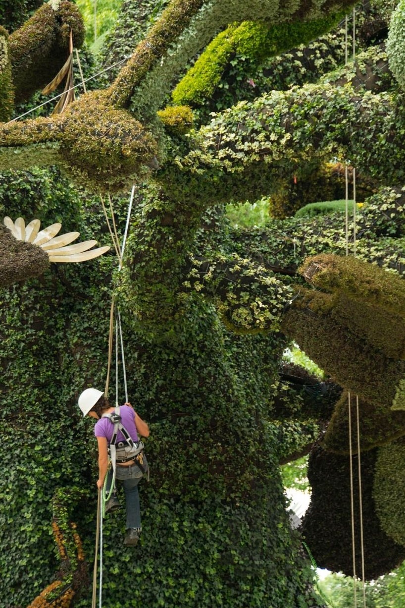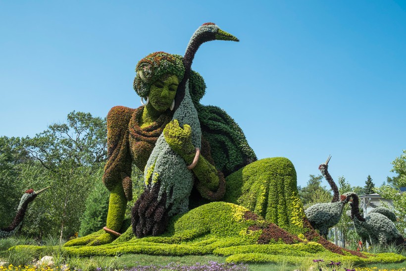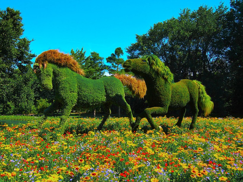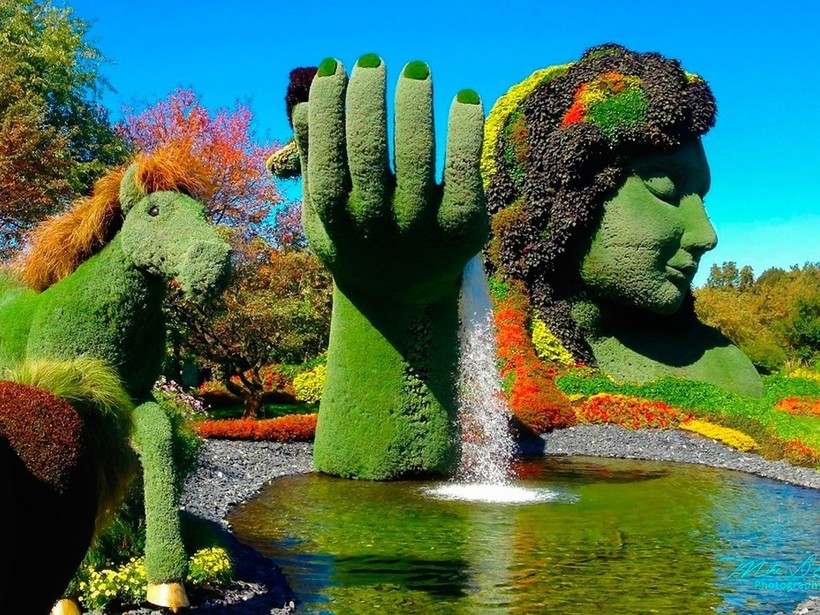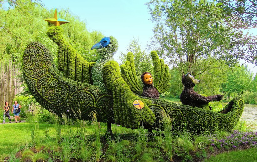 Посещение ботанического сада представляется нам как неспешная прогулка и мирное любование красивыми клумбами, обилием ароматных цветов, прудами и зелеными полянами. Вот только Монреальский сад — это нечто большее, чем просто оранжерея. Он похож на фантастический музей под открытым небом, экспонаты в котором выполнены из разноцветных цветов и зелени. Когда оказываешься здесь, создается впечатление, что попал в сказочный мир, а его огромные причудливые создания вот-вот оживут.