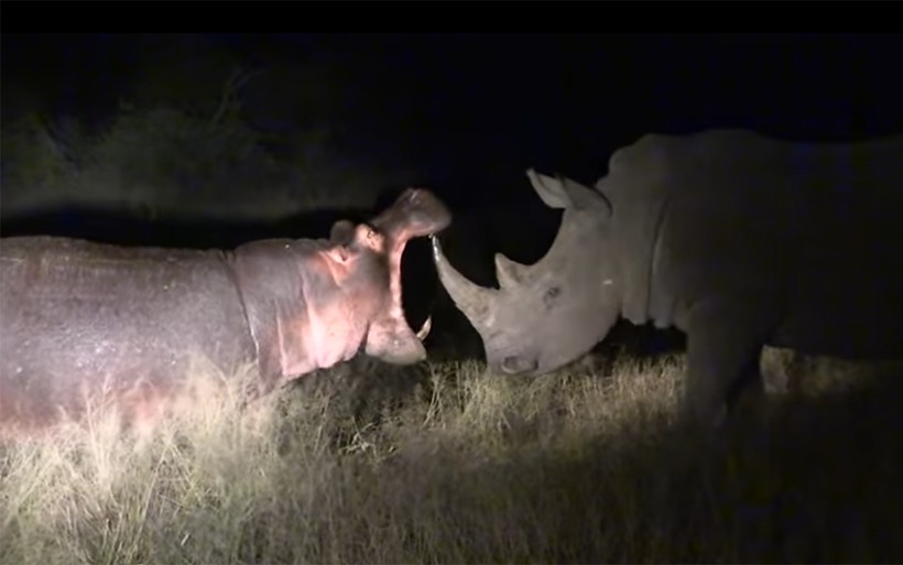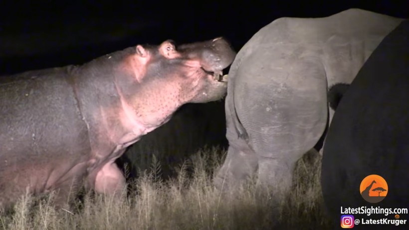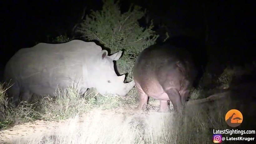 Авторы сегодняшнего ролика также стали очевидцами встречи бегемота и носорога, посмотрим, как она прошла.