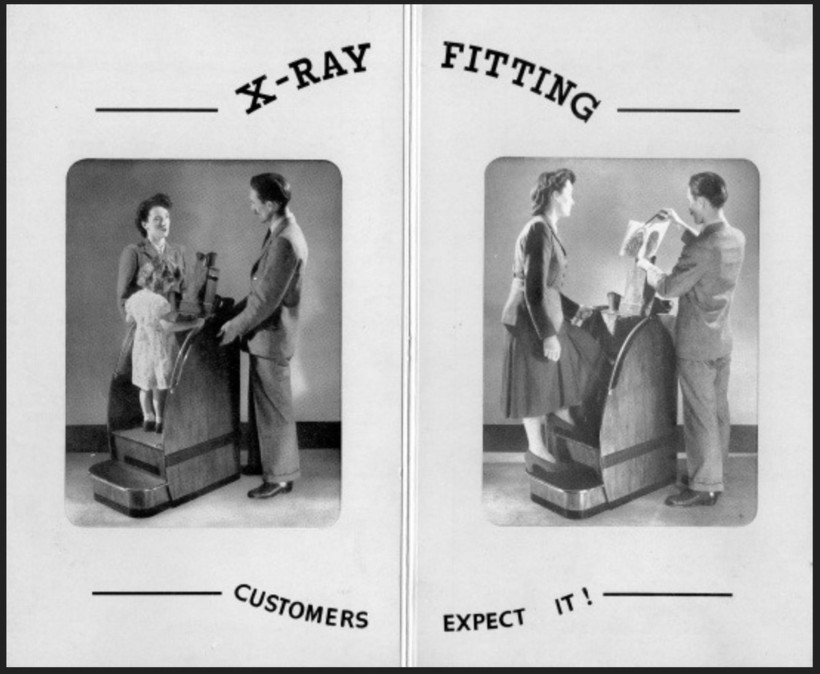 Но наука и технический прогресс, подарившие торговцам столь чудесный инструмент, повышающий продажи, стремительно развивались. Ученые накапливали и систематизировали свои знания о рентгеновских лучах, которые могли видеть то, что недоступно человеческому глазу. И уже спустя пару десятилетий после появления оригинальной новинки стало понятно, что удобный прибор не так уж и безопасен для здоровья покупателей и самих продавцов, чьи руки регулярно попадали под воздействие лучей. Уже в середине прошлого века к педоскопам стали относиться с большей осторожностью, а их применение для примерки детской обуви было ограничено во многих странах. Конечно, владельцы обувных магазинов были глубоко опечалены таким поворотом событий, но им пришлось смириться с тем, что приборы были в конечном итоге запрещены полностью. Дольше всех это устройство использовалось в Канаде и Великобритании, где последние педоскопы исчезли из обувных магазинов к 1970 году.