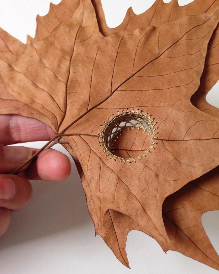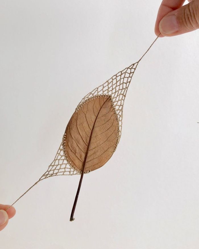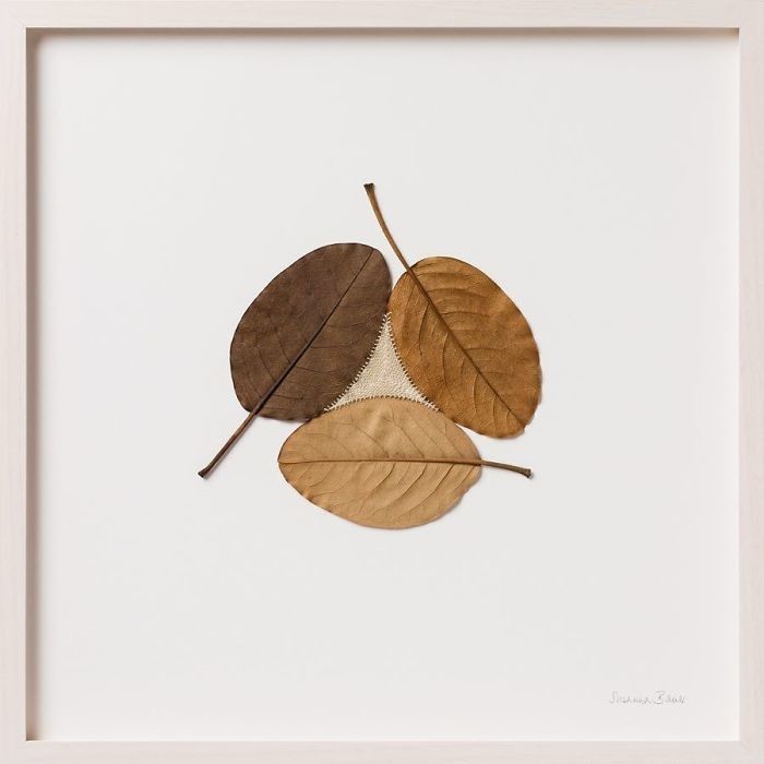 Сюзанна Бауэр — совершенно уникальная художница из немецкого городка Айхштетт. Ее творческим материалом является высохшая осенняя листва и тонкие хлопковые нитки. Работы Бауэр воплощают в себе поразительный баланс хрупкости и силы. Каждая из них представляет собой отдельную историю и отдает дань вечной и вневременной красоте природы.