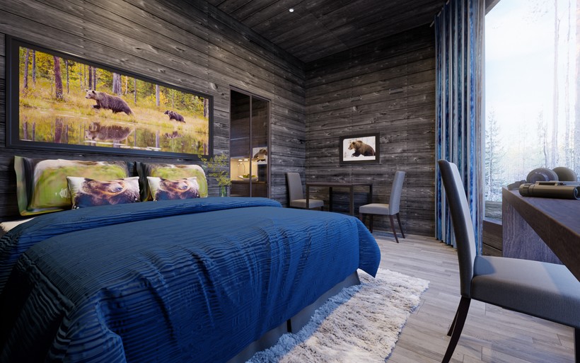 Меньше, чем в 2-х километрах от российской границы в районе Костомукшского заповедника финская компания Wild Taiga построила 5 деревянных домов Luxury Bear Cabin с панорамным остеклением для наблюдения за дикой природой этих глухих мест. Шанс увидеть медведя составляет 99%! В поле зрения попадаются также росомахи и волки, а над головой пролетают редкие виды сов и аисты.