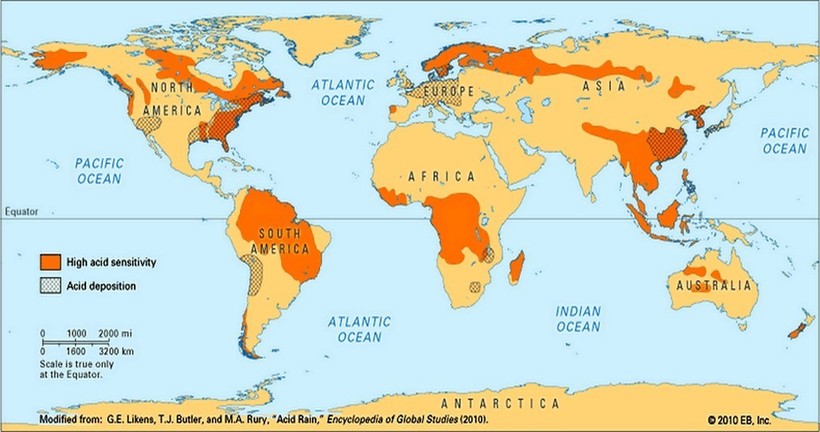 Но кислотные осадки наблюдаются не только в крупных городах по всему миру, но и в отдаленных регионах. Образующиеся над городами токсичные вещества переносятся вместе с воздушными массами на большие расстояния. Конечно, их концентрация со временем уменьшается, так как происходит рассеивание загрязняющих частиц, но они в конечном итоге попадают на землю вместе с осадками. Из-за трансграничного переноса воздушных масс страдают соседние страны, что нередко служит причиной взаимных претензий и конфликтов. Так, например, скандинавские страны, такие как Швеция и Норвегия являются заложниками своего географического положения, так как именно к ним вместе с доминирующими западными ветрами попадает значительное количество оксидов азота и серы, которые производятся на территории Великобритании, Франции и Германии. В странах Северной Европы часто выпадают кислотные осадки, благодарить за которые стоит соседей из Западной Европы. Похожая ситуация наблюдается в Европейской части России, где, по подсчетам специалистов, около 40% выпадающей с осадками серы поступает из Польши, Украины, Германии и других стран Европы. Канада также страдает от кислотных осадков, причиной возникновения которых являются воздушные массы из соседних США. Вот по этой причине даже аграрные страны, не вносящие большой вклад в загрязнение атмосферы, могут пострадать от кислотных осадков, причиной которой будут их близкие и отдаленные соседи.