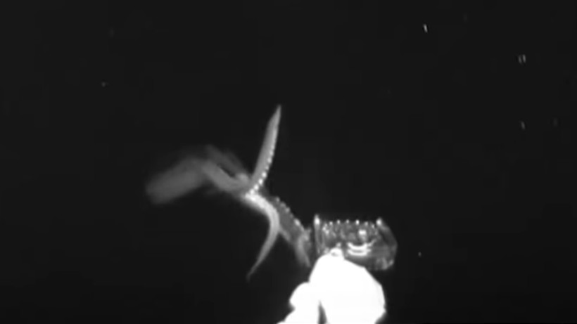 Исследователи глубин изучают морские дно с помощью специальных камер, которые могут снимать в воде в любое время суток в режиме здесь и сейчас. Так, ученые столкнулись с интересным животным в ходе одной из ночных съемок: гигантский кальмар захотел присвоить аппаратуру ученых себе, подумав, что это какая-то еда. В итоге удалось сделать интересное и даже немного устрашающее видео, которое понравилось пользователям сети.