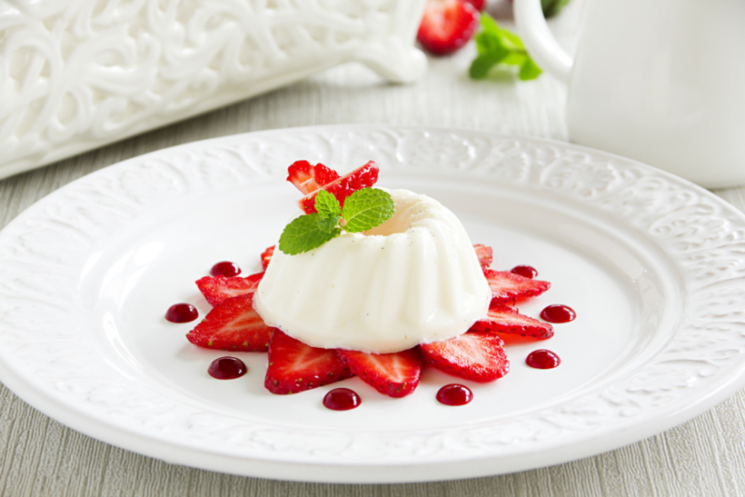 Blancmange — это холодный десерт итальянско-французского происхождения на основе молока, сахара и желатина, который очень понравился русским. Это был любимый десерт Пушкина. В повести «Барышня-крестянка» горничная Настя говорит о бланманже, когда рассказывает своей хозяйке об обеде в доме жены повара: «Ну вот вышли мы из-за стола... а сидели мы часа три, и обед был славный; пирожное блан-манже синее, красное и полосатое... »