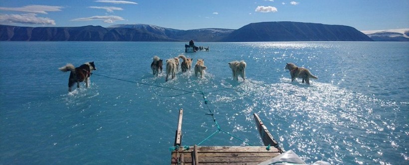 Именно в этом году над северной Атлантикой наблюдается аномально высокие температуры воздуха. Климатологи уже на этой неделе прогнозируют 40-градусную жару во многих странах Европы, от солнечной Испании до Польши. Гренландия также оказалась во власти аномальной жары, и датские климатологи, которые ежегодно совершают экспедиции вглубь острова, в этом году были вынуждены плыть в санях, вместо того чтобы скользить по льду. Интересным и в то же время ужасающим снимком поделился в сети один из участников экспедиции, на которой ездовые собаки бегут по воде, образовавшейся поверх ледяного покрова.