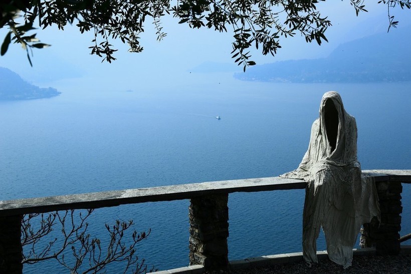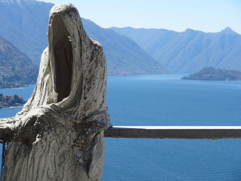 Статуя, которая похожа на призрака, присевшего насладиться красотами итальянского озера Комо.