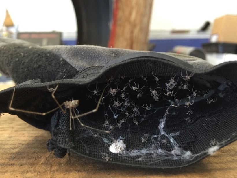 Пауки устроили себе домик в ведьминой шляпе, оставшейся с Хэллоуина.