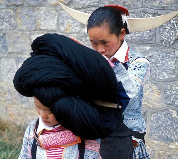 «Рогатая» прическа племени мяо из Китая