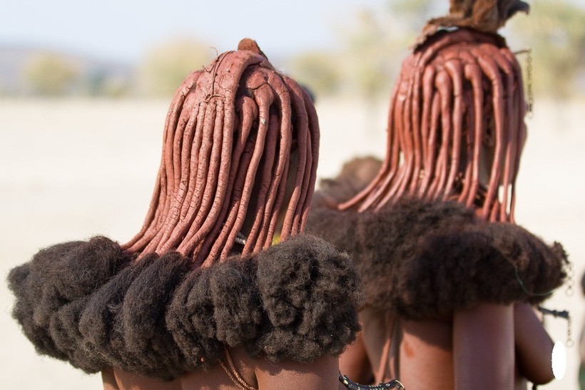 В Намибии так ходят каждый день. Волосы распределяются на отдельные косы и имеют необычный красный оттенок. Его придает специальная мазь, которую племя использует по всему телу для поддержки гигиены, защиты от солнечных лучей и укусов насекомых. Ею натираются по нескольку раз в день. Длинные дреды наращиваются на половину с помощью чужих волос. Чаще всего с почтением принятых от отца семейства.