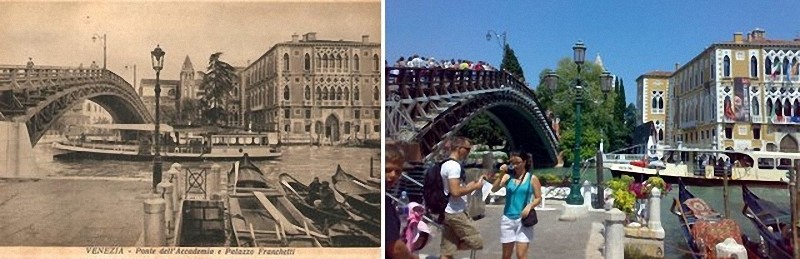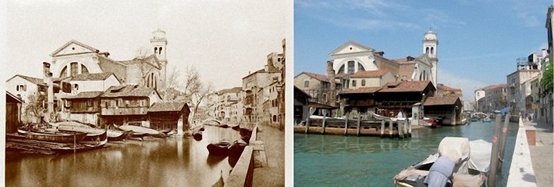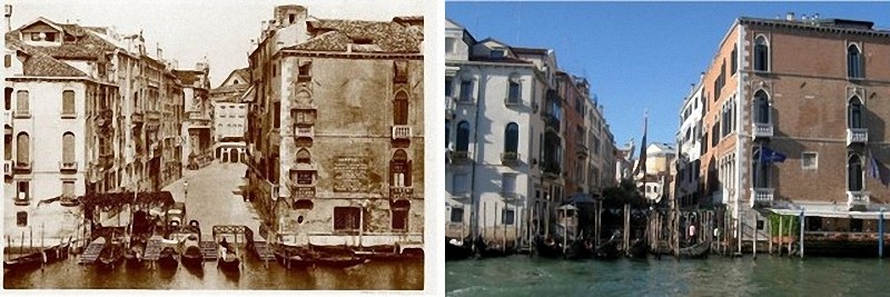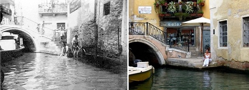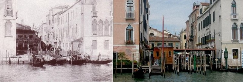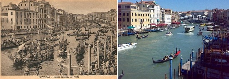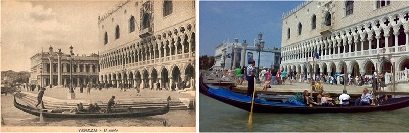 Мы с мужем так загорелись идеей поиска и фотографирования этих мест с открыток, что занимались этим как вместе, так и по отдельности. Надо отдать должное терпению Валеры, когда он, желая добиться максимальной схожести со старинным оригиналом, простаивал подолгу в нужном месте, ожидая проплывающую гондолу, например. А тут вдруг кто-то совсем неожиданно мог встать прямо перед объективом или, в порыве успеть нажать на кнопочку, вдруг заваливал горизонт! И опять долгие минуты ожидания…