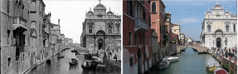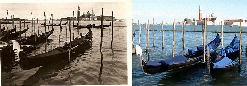 Некоторые места ставили нас в тупик, мы с мужем не могли их найти, также заставляли задумываться и старожил. Мы распечатали образцы картинок и ходили с ними по городу, обращались к венецианцам на улице. Они сами с огромным удовольствием и любопытством их разглядывали, потом их лица озарялись улыбкой, в тот момент когда они узнавали места. Иногда ошибались и они, и тогда мы, протопав по жаре не один километр, обращались к гондольерам — вот уж кто точно знает ВСЁ! Гондольеры здорово нам помогли в поисках. Спасибо им!