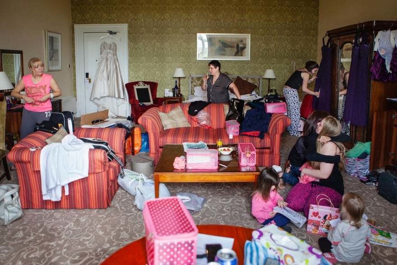 Фотограф снимает абсолютно все: глажку в последнюю минуту, суету вокруг и попытки очень быстро одеться.