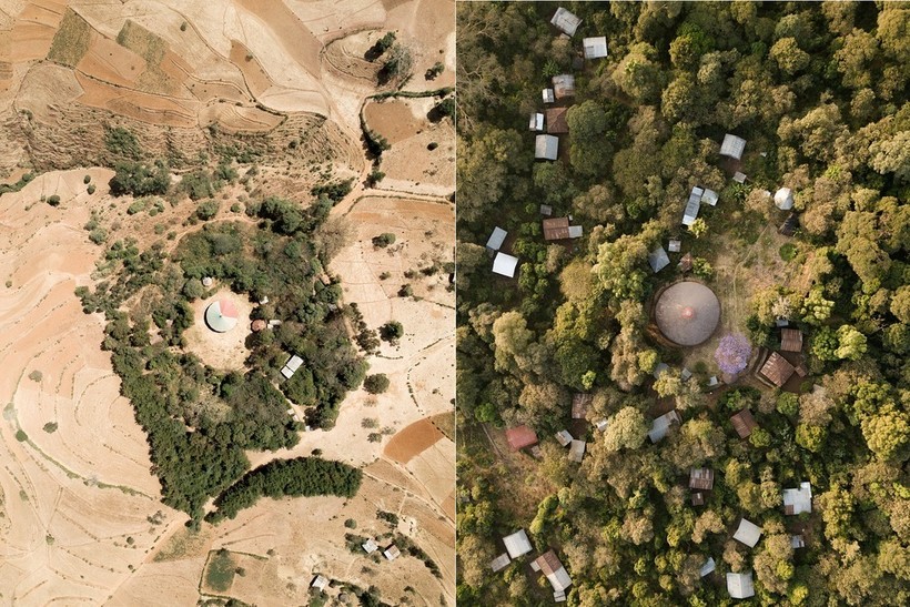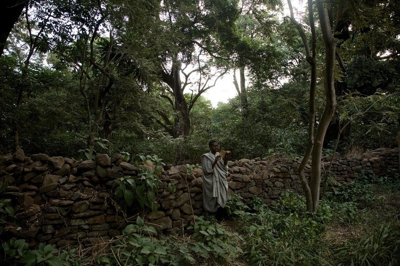Эфиопия практически единственная страна Африки, где православие исповедует большая часть населения. Эфиопы всегда считали, что деревья помогают доставить молитву богу, а лес не дает затеряться словам. Поэтому церкви всегда строились в окружении деревьев. Даже когда территории разрабатывались под поля, то лес вокруг храмов не трогали. Поэтому сегодня в стране огромное количество ярко-зеленых очагов природы, в центре которых практически всегда стоит Эфиопская православная церковь.