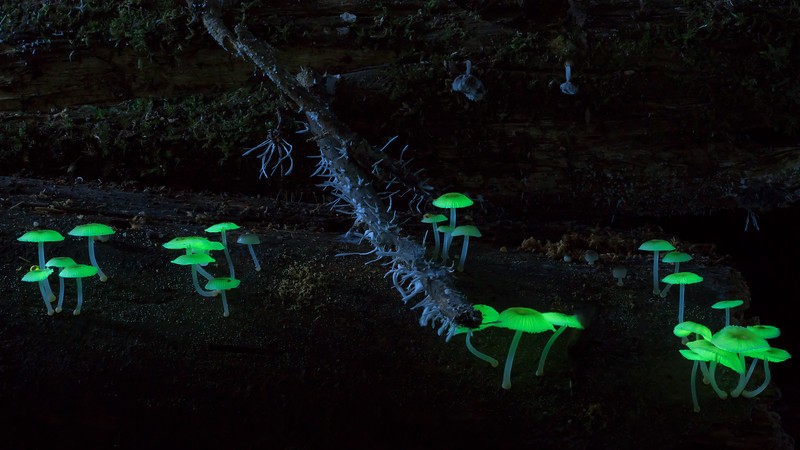 Что может быть более завораживающим, чем шоу света? А если это шоу устраивает сама природа, то это вообще что-то на грани фантастики. Давно известно, что к биолюминесценции склонны некоторые растения, насекомые и рыбы, а также грибы. В Японии и в некоторых странах Азии растет особый вид Mycena chlorophos — гриб, который в темноте излучает жутковатый зеленый свет.