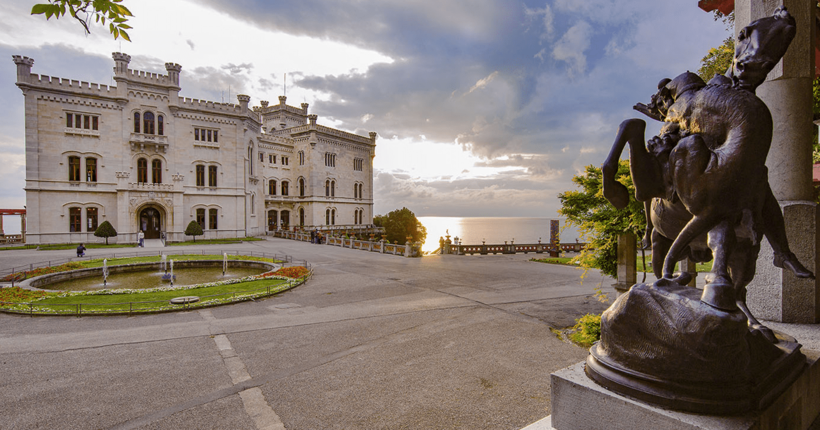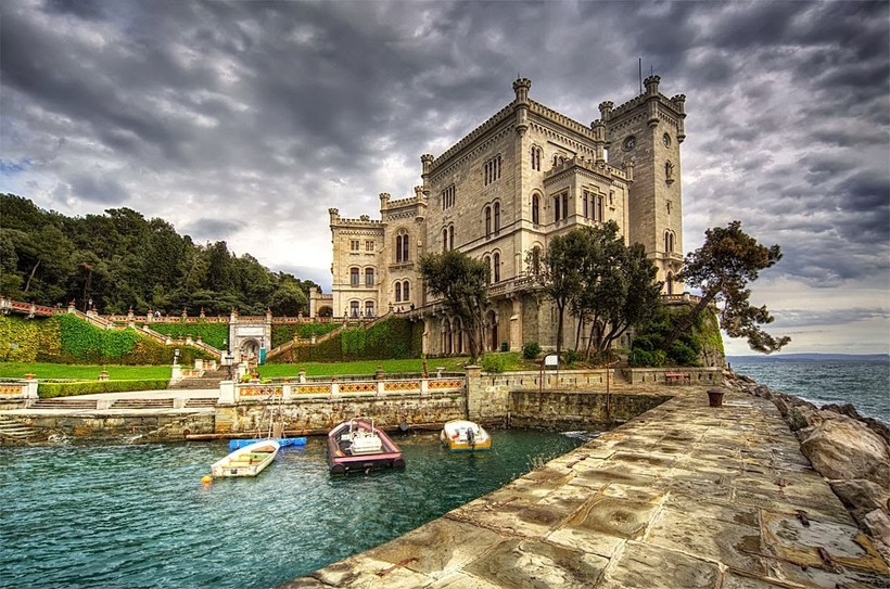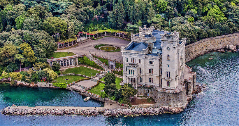 Величественное здание построено на краю скалистого утеса, омываемого Адриатическим морем, а с другой стороны замка раскинулся огромный дендрарий. Изысканное строение было основано еще в середине 19 века, а хозяевам его были будущий мексиканский император эрцгерцог Максимилиан I и его супруга.