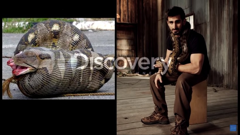 Однажды американский натуралист и ведущий канала «Дискавери» Пол Розали решил проверить этот факт опытным путем и попытался буквально скормить себя змее. Для этой безумной идеи был разработан специальный костюм, который выдерживал сильное давление и мог снабжать находящегося внутри человека кислородом на протяжении трех часов. Кроме того, он был оснащен разными датчиками, отслеживающими состояние здоровья, и камерами. Когда настал день съемки, группа отправилась в амазонский лес на поиски анаконды. Обнаружив хищницу, они приступили к съемке. Вот только, к их удивлению, рептилия отказалась есть добровольца и не выказала ни малейшей заинтересованности. Более того, попыталась сбежать. Тогда ради спасения передачи Полу пришлось обмазать себя свиной кровью и начать провоцировать змею на нападение. Наконец, гигант разозлился и принялся сдавливать мужчину, попутно заглатывая его голову. Но тут все снова пошло не по плану: ведущий почувствовал, что его рука ломается, и принялся звать на помощь. Таким образом, съемку пришлось прекратить, а странная цель передачи так и не была достигнута.