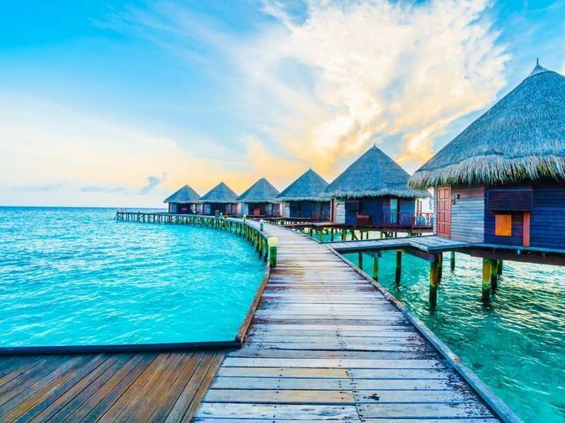 Райские Мальдивы, окруженные коралловыми рифами