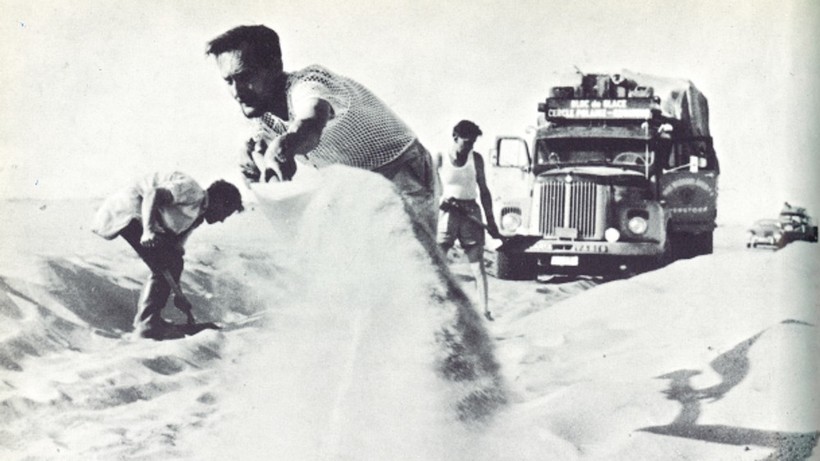 Однако на Черном континенте все было не так гладко. Высадилась экспедиция в Алжире, раздираемым войной за независимость. Так что путешествие становилось опасным. Поездка по Сахаре тоже была очень сложной: грузовик шел через пустыню, где совершенно не было дорог, и постоянно застревал в песках. Участникам экспедиции приходилось его откапывать по несколько часов на 50-градусной жаре.