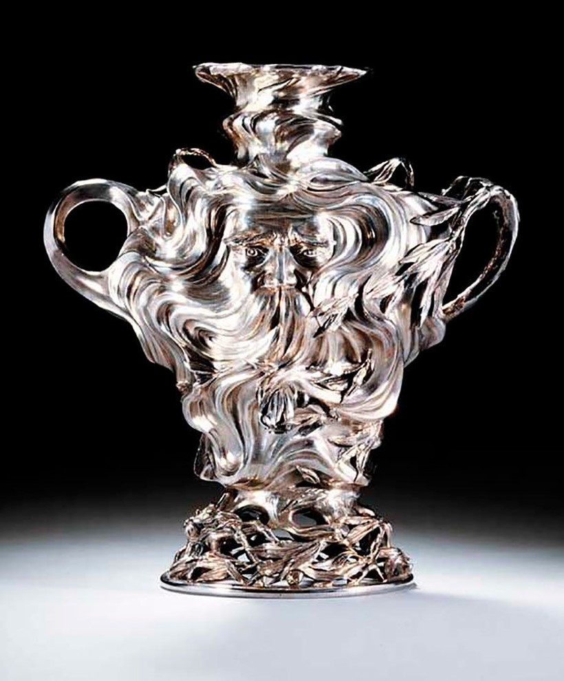 Шедевр был создан в 1899–1908 годах. В 2004 году на лондонском аукционе его приобрел ценитель из России за 274 400 фунтов стерлингов. Он был выполнен из чистого серебра и имел красивую форму с изображением лешего.
