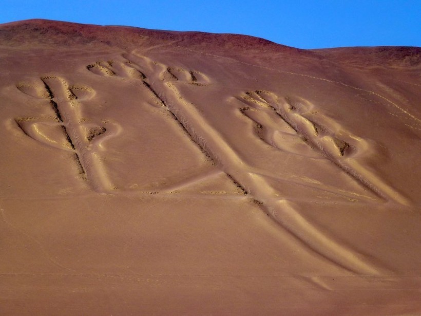 Кому-то этот начертанный знак напоминает духовную сторону жизни человека — христианский знак Святой Троицы. Высота геоглифа — 128 метров, ширина — чуть более 70 метров, он хорошо виден не только с моря, но и с воздуха. Конкистадоры считали, что это знак свыше о христианизации местного населения. Ведь в этой религии знак трезубца рассматривался как символ воскресения. В индуизме это атрибут Шивы, он несет в себе три назначения: творец, хранитель, разрушитель.