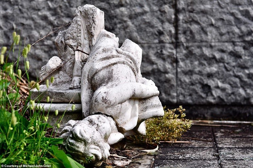 Разрушенный ангел из камня, который когда-то украшал стены.