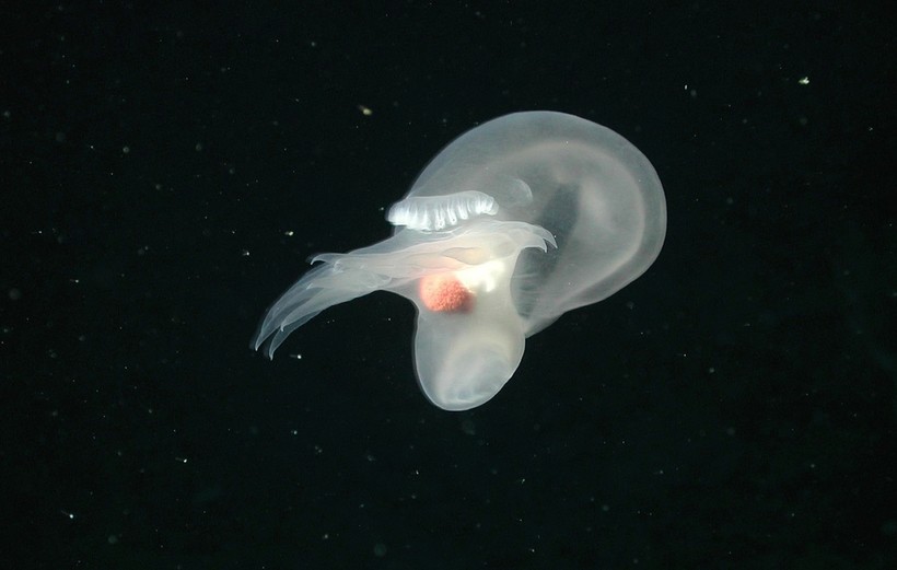 Вот такое любопытное создание было запечатлено NOAA на океанском дне в 2010 году. Существо совершенно прозрачное, поэтому видно все, что есть у него внутри.