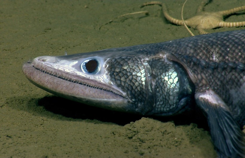 А это батизаурус — самый глубоководный морской хищник, который может обитать в толще воды на глубине 3,5-5 километров.