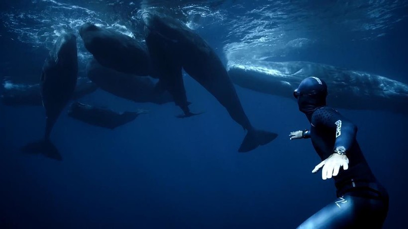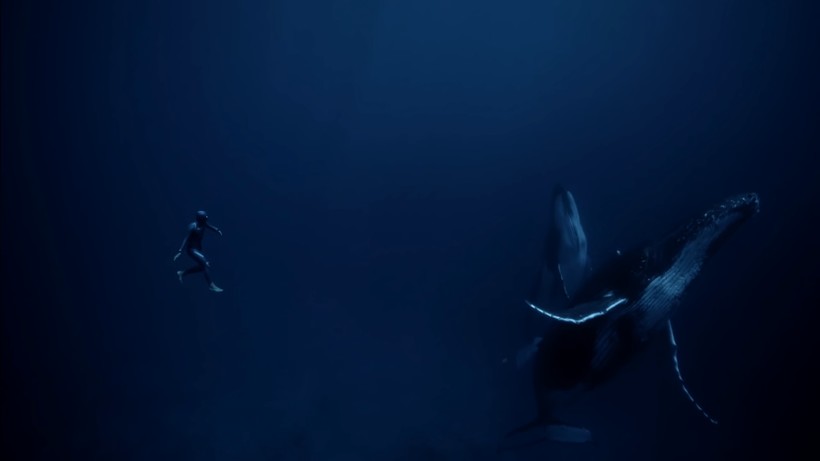 Мы видим, как ныряльщик бегает по песчаному дну, словно это песок на пляже, и касается настоящего проплывающего мимо кита. Видео длится тринадцать минут, и все время дайвер не выплывал на поверхность. Зрители восхищались невероятными физическими данными, но переживали, что так можно запросто стать добычей акулы.