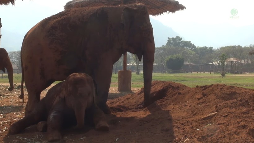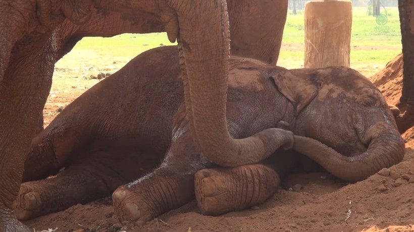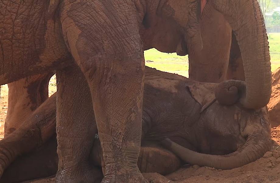 За слонами действительно очень интересно наблюдать: самые большие млекопитающие в мире зачастую бывают отличными родителями, так как рожают мало и редко. Слонята довольно долго находятся вместе в мамой, пока не станут полностью самостоятельными. В этом трогательном видео слоненок хочет лечь днем спать — к нему подходит слониха, чтобы укачать и успокоить его.