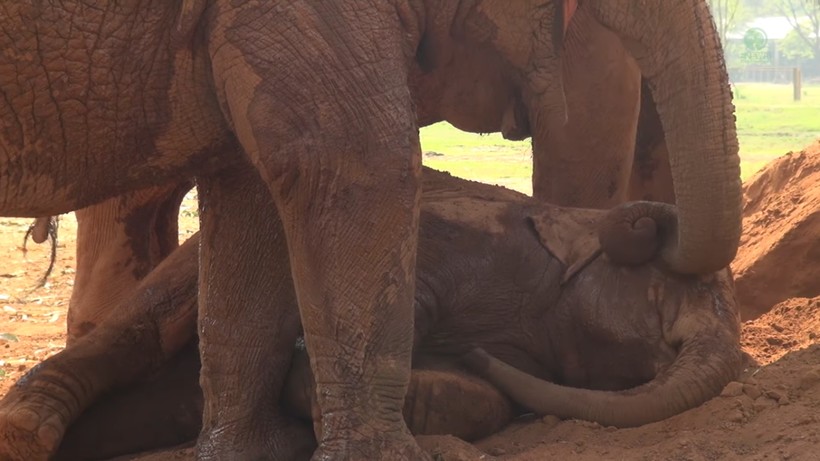 Затем мама-слониха обязательно покажет, как правильно нужно намазать себя грязью, чтобы избежать солнечных ожогов. Слонихи стада с радостью берут на себя заботы по защите детенышей-сирот, а если мама слоненка занята или просто устала, то другие самки с радостью будут присматривать за ее детенышем. В стаде развита очень сильная поддержка материнства, поэтому слонята всегда в безопасности.