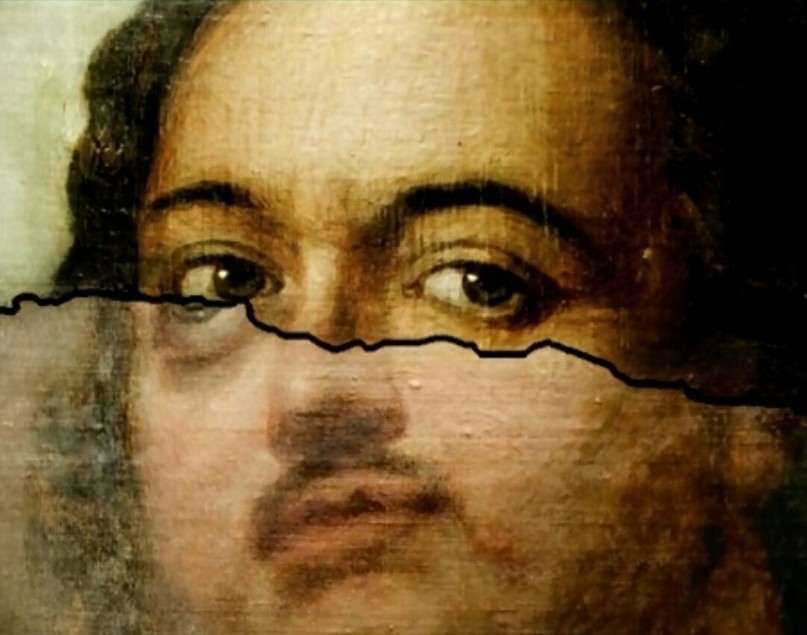 Пожалуй, самым ответственным моментом было принятие решения о расчистке лица главного героя картины — царя Петра Первого. Были проведены дополнительные исследования, показавшие, что и лицо царя отличается от того, что изображено на верхнем слое. После недолгих колебаний было решено расчистить и его, и перед сотрудниками галереи предстал совершенно иной образ — образ настоящего сурового царя, который никак не соответствовал тому миловидному персонажу, который смотрел на посетителей галереи все эти годы.