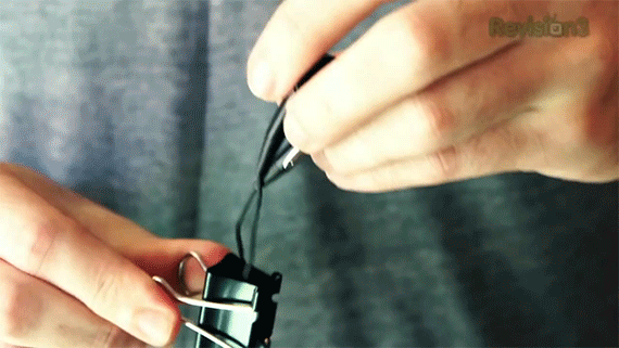 17. Чтобы провода наушников не перепутывались, намотайте их на зажим для бумаги.
