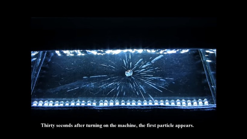 На видео ниже заснят прорыв в области изучения радиации. Помещенное в специальную камеру радиоактивное вещество излучает частицы. Уран расположили в центре аппарата, спиртовую жидкость, налитую вовнутрь, охладили до -40°C. При таких условиях спирт создал облака пара. Частички, соприкасаясь в движении с парами спирта, ионизировали их. Спирт превратился в конденсат, благодаря этому мы визуально можем наблюдать частицы излучения и их движение. При опыте использовалось альфа-излучение, поэтому человек, участвовавший в этом, совсем не пострадал.