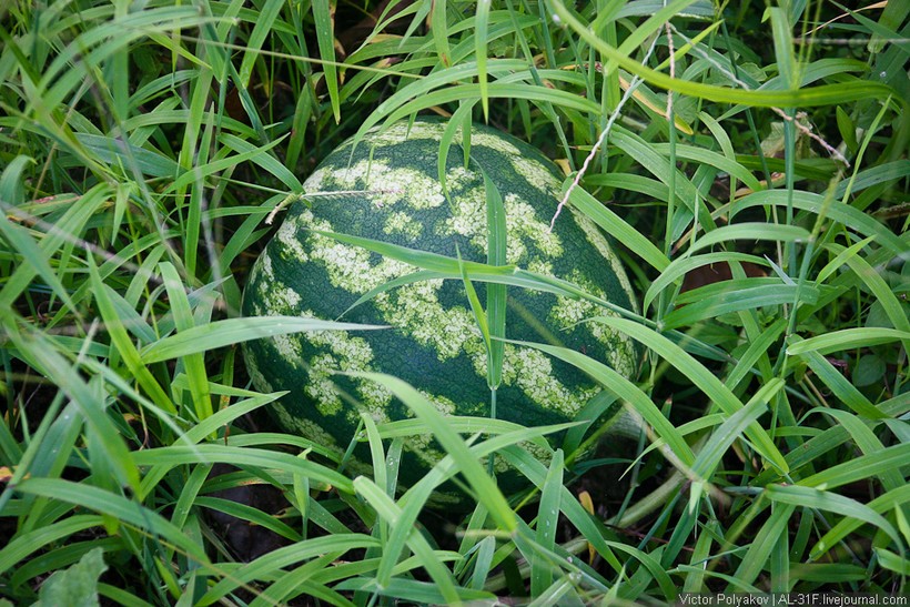 В траве нашли бесхозный арбуз, Антонио достал мачете, порубил его на куски. Съели и пошли гулять дальше.