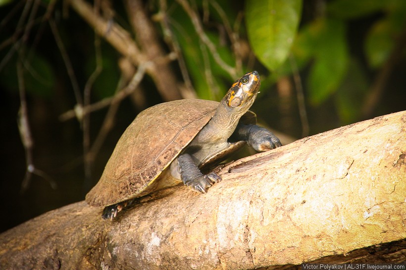 Обычно туристы берут с собой в лодку палки, чтобы отбиваться от крокодилов и анаконд, но наш гид Антонио сказал, что вся эта нечисть сползается в сухой сезон, когда в болотах недостаточно воды. В такое время приходится эвакуировать или дополнительно защищать ферму, к которой мы плывем — змеи воруют поросят.